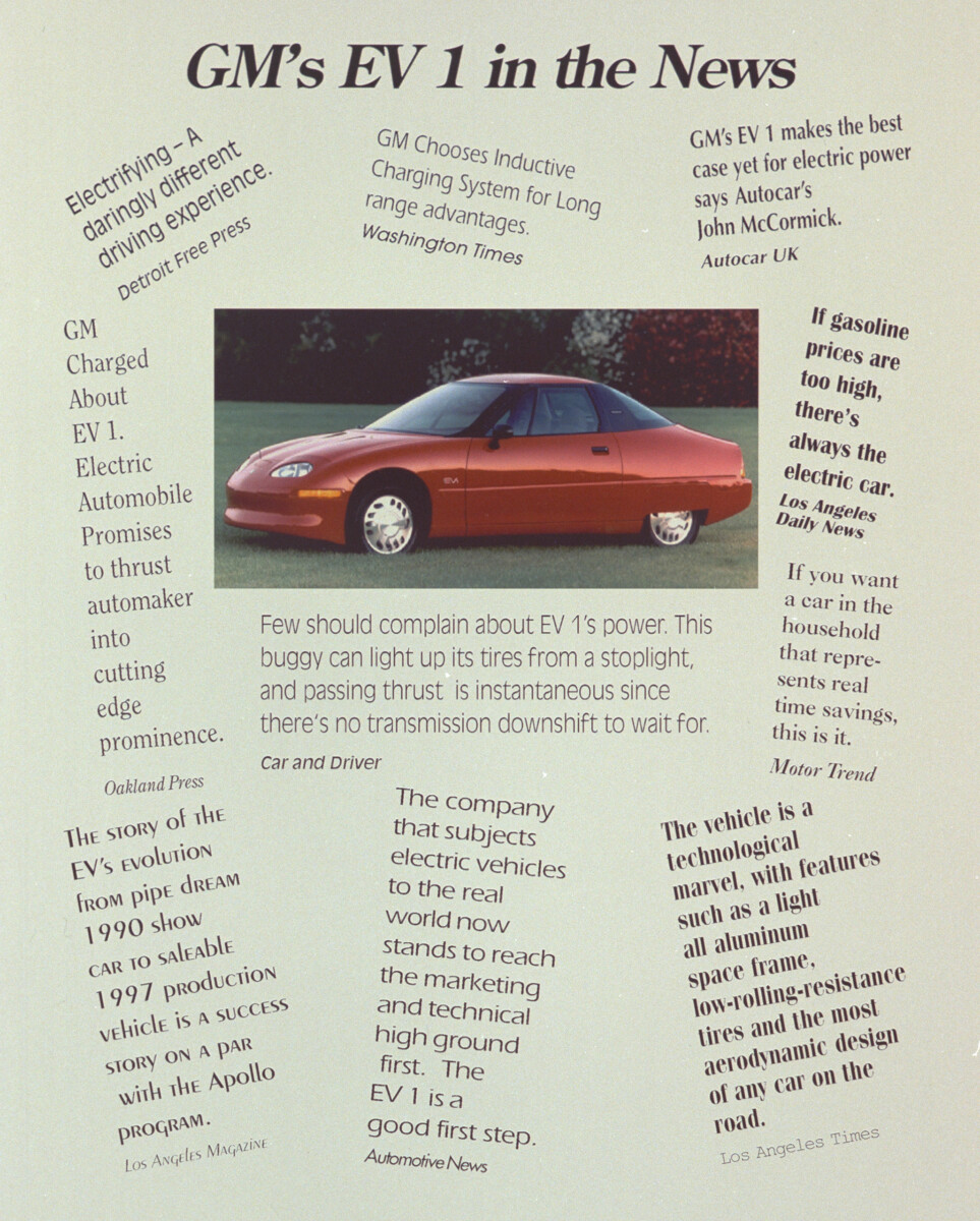 Throughout its lifespan, the EV1 was positively received for its quietness and subtlety swift performance. “The EV1 drives a real car and not a glorified golf cart,” MotorWeek host John Davis said in his review of the car in 1997.