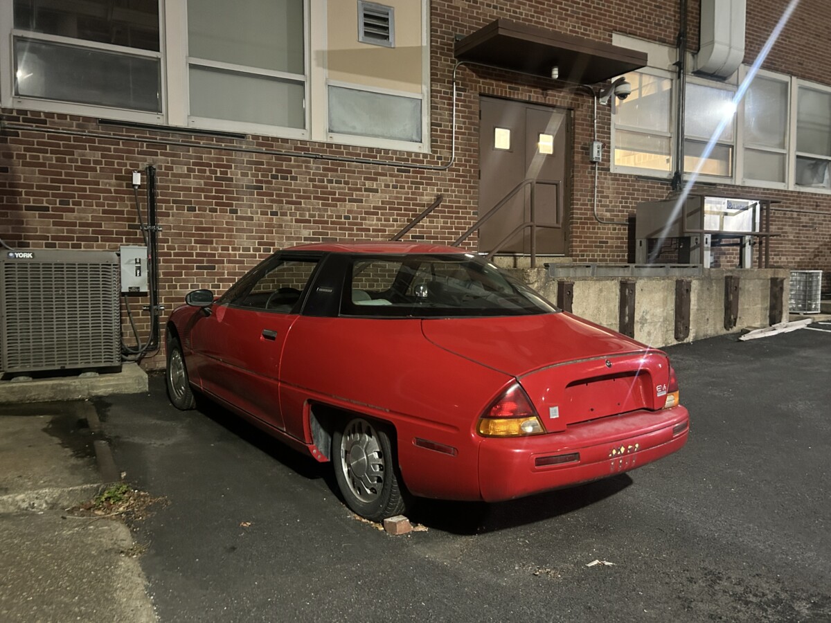 Nestled in the parking lot of the Lewis K. Downing building sits a General Motors (GM) EV1, a bright red two-door from the late 1990s that looks alien compared to the modern cars that surround it.