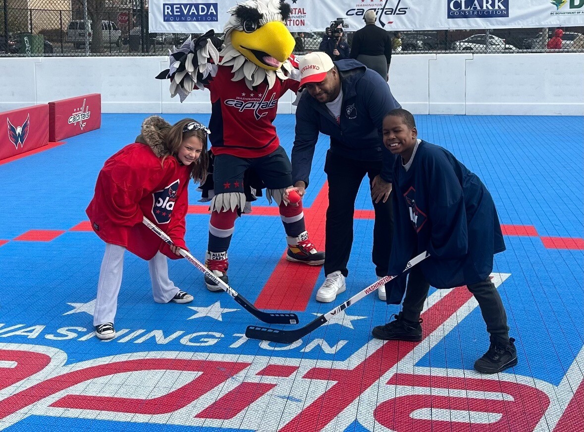 The event marked the unveiling of a modernized, ball hockey rink that is open to all D.C. youth and eager hockey learners. The project is part of Monumental Sports & Entertainment’s District of Play initiative to expand safe and high-quality recreation spaces for kids across the city.