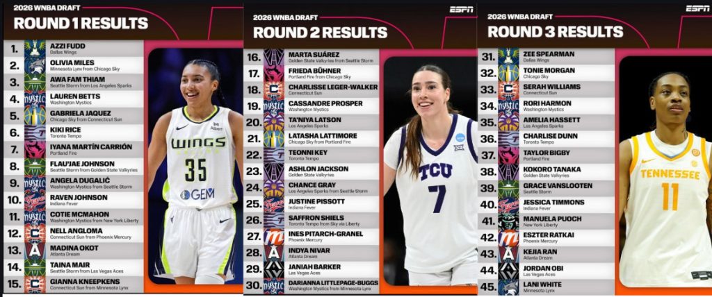 Fresh off the conclusion of the women’s NCAA season, 35 seniors and 10 international players were selected in the 2026 WNBA Draft.